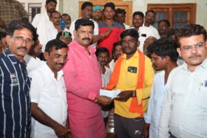 ಇನ್ನೂ ಇತ್ತೀಚೆಗೆ ಕರಡಿಗುಡ್ಡ ಗ್ರಾಮದಲ್ಲಿ ವಿದ್ಯುತ್ ತಗುಲಿ 14 ಕುರಿ, 2 ಎತ್ತು ಮೃತಪಟ್ಟಿದ್ದ ಘಟನೆಗೆ ಸಂಬಂಧಿಸಿದಂತೆ ಸರ್ಕಾರದ ವತಿಯಿಂದ 2,14,000 ರೂ. ಪರಿಹಾರದ ಚೆಕ್ ವಿತರಿಸಲಾಯಿತು.