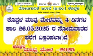 ): 2025-26ನೇ ಸಾಲಿನ ಮಾವು ಮಾರಾಟ ಮೇಳವನ್ನು ಇನ್ನೂ 4 ದಿನಗಳ ಕಾಲ ಮುಂದುವರೆಸಲಾಗಿದೆ ಎಂದು ಕೊಪ್ಪಳ ತೋಟಗಾರಿಕೆ ಉಪನಿರ್ದೇಶಕ ಕೃಷ್ಣ ಸಿ. ಉಕ್ಕುಂದ ಅವರು ತಿಳಿಸಿದ್ದಾರೆ.