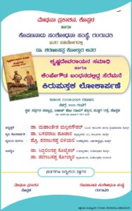 ಕೊಪ್ಪಳ, ಆ,೩;- ಮೇಘನಾ ಪ್ರಕಾಶನ ಕೊಪ್ಪಳ ಹಾಗೂ ಕೊಪಣನಾಡು ಸಂಶೋಧನಾ ಸಂಸ್ಥೆ, ಗಂಗಾವತಿಇವರ ಸಂಯುಕ್ತಾಶ್ರಯದಲ್ಲಿಗಂಗಾವತಿಯ ಸಂಶೋಧಕರು ಹಾಗೂ ಪ್ರಾಚಾರ್ಯರಾದಡಾ.ಶರಣಬಸಪ್ಪಕೋಲ್ಕಾರ್ಇವರ ‘ಕೃಷ್ಣದೇವರಾಯನ ಸಮಾಧಿ ಹಾಗೂ ಕೆಂಪೇಗೌಡ ಬಂಧನದಲ್ಲಿ ಸೆರೆಮನೆ’ ಎಂಬ ಸಂಶೋಧನಾಕಿರುಹೊತ್ತಿಗೆ ಆ,೩ ರವಿವಾರರಂದುಕೊಪ್ಪಳ ನಗರದಕುಷ್ಟಗಿ ರಸ್ತೆಯಲ್ಲಿರುವಸಪ್ತಗಿರಿ ಸಹ್ಯಾದ್ರಿ ನಿವಾಸದಲ್ಲಿಬಿಡುಗಡೆಗೊಳ್ಳಲಿದೆ. ಕೃತಿಯನ್ನು ನಿವೃತ್ತ ಪ್ರಾಧ್ಯಪಕರಾದಡಾ.ಬಸವರಾಜ ಪೂಜಾರ್ಇವರು ಬಿಡುಗಡೆ ಮಾಡಲಿದ್ದಾರೆ. ಕಾರ್ಯಕ್ರಮದಅಧ್ಯಕ್ಷತೆಯನ್ನು ಹಿರಿಯ ಸಾಹಿತಿಗಳು ಹಾಗೂ ಗ್ರಂಥದಾನಿಗಳಾದ ಡಾ.ಮಹಾಂತೇಶ ಮಲ್ಲನಗೌಡರ್ ವಹಿಸಿಕೊಳ್ಳಲಿದ್ದಾರೆ.ಪ್ರಾಧ್ಯಾಪಕರಾದ ಪ್ರೊ.ಶರಣಬಸಪ್ಪ ಬಿಯಲೆಯವರುಕೃತಿಯಕುರಿತು ಮಾತನಾಡಲಿದ್ದಾರೆ.ಕೃತಿಯ ಲೇಖಕರಾದಡಾ.ಶರಣಬಸಪ್ಪಕೋಲ್ಕಾರ್ ಹಾಗೂ ಉಪನ್ಯಾಸಕ ಡಾ.ಸಿದ್ಧಲಿಂಗಪ್ಪ ಕೊಟ್ನೆಕಲ್ ಉಪಸ್ಥಿತಿಯಾಗಲಿದ್ದಾರೆಂದು ಮೇಘನಾ ಪ್ರಕಾಶನದ ಪರವಾಗಿ ಪತ್ರಿಕಾ ಪ್ರಕಟಣೆಯಲ್ಲಿ ತಿಳಿಸಿದ್ದಾರೆ.