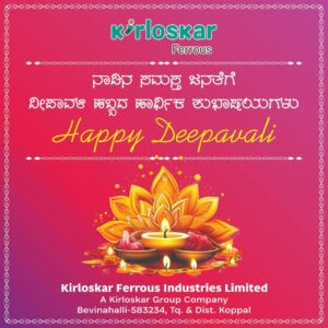 ನಾಡಿನ ಸಮಸ್ತ ಜನತೆಗೆ ದೀಪಾವಳಿ ಹಬ್ಬದ ಹಾರ್ದಿಕ ಶುಭಾಶಯಗಳು -Kirloskar Ferrous Industries Limited