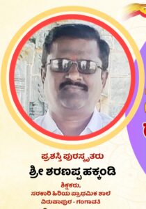 ಶಿಕ್ಷಕ ಶರಣಪ್ಪ ಹಕ್ಕಂಡಿಯವರ ಶಿಕ್ಷಣ ಕ್ಷೇತ್ರದ ಸಾಧನೆಗೆ ಕಿಷ್ಕಿಂಧಸಿರಿ ಪ್ರಶಸ್ತಿ