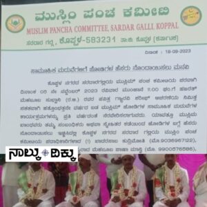 ಕೊಪ್ಪಳ ನಗರದ ಸರದಾರಗಲ್ಲಿಯ ಮುಸ್ಲಿಮ್ ಪಂಚ ಕಮೀಟಿಯ ಪರವಾಗಿ ದಿನಾಂಕ: 05 ನೇ ನವೆಂಬರ್ 2023 ರವಿವಾರ ಮುಂಜಾನೆ 11.00 ಘಂ.ಗೆ ಹಜರತ್ ಮಹಬೂಬ ಸುಲ್ತಾನ (ರ.ಅ.) ರವರ ಪವಿತ್ರ ಗ್ಯಾರವಿ ಶರೀಫ್ ಆಚರಣೆಯ ನಿಮಿತ್ತ ಸತತವಾಗಿ ಹತ್ತೊಂಭತ್ತನೇ ವರ್ಷದ ಬಡ ಮುಸ್ಲಿಮ್ ಜೋಡಿಗಳ ಸಾಮೂಹಿಕ ಮದುವೆಗಳ ಕಾರ್ಯಕ್ರಮಗಳನ್ನು ಪ್ರತಿ ವರ್ಷದಂತೆ ನೆರವೇರಿಸಲಾಗುವದು. ಯಾವತ್ತೂ ಮುಸ್ಲಿಮ ಬಾಂಧವರು ತಮ್ಮ ಸಂಬಂಧಿಕರು ಅಥವಾ ಸ್ನೇಹಿತರ ಕಡೆಯಿಂದ ಜೋಡಿಗಳ ಬಗ್ಗೆ ಹೆಸರು ನೊಂದಾಯಿಸಲು ಇಚ್ಚಿಸಿದಲ್ಲಿ, ಕೊಪ್ಪಳ ನಗರದ ಸರದಾರ ಗಲ್ಲಿಯ ಮುಸ್ಲಿಂ, ಪಂಚ ಕಮೀಟಿಯ ಪದಾಧಿಕಾರಿಗಳಾದ (1) ಖಾದರಸಾಬ ಕುದ್ರಿಮೋತಿ (ಮೊ.9036967122), (2)ನಗರಸಭೆಯ ಮಾಜಿ ಸದಸ್ಯರಾದ ಮೆಹಬೂಬ ಪಾಷಾ ಮಾನ್ವಿ (ಮೊ. 9900576586), (3) ಮರ್ದಾನಸಾಬ ಲುಂಗಿ (9741581671) ಅಥವಾ (4) ಮೀರಾಸಾಬ ಬನ್ನಿಗೋಳ 7899336766), ಇವರನ್ನು ಖುದ್ದಾಗಿ ಸಂಪರ್ಕಿಸಿ ದಿನಾಂಕ 29-10-2023 ರ ಒಳಗಾಗಿ ವಿವರಗಳೊಂದಿಗೆ ಹೆಸರು ನೊಂದಾಯಿಸ ಬೇಕೆಂದುಅಧ್ಯಕ್ಷರು, ಮುಸ್ಲಿಮ್ ಪಂಚಕಮೀಟಿ ಸರದಾರ ಗಲ್ಲಿ ಕೊಪ್ಪಳ ಮನವಿ ಮಾಡಿದ್ದಾರೆ.