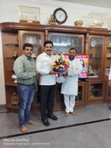 ಬೆಂಗಳೂರಿನ ನಿವಾಸದಲ್ಲಿ ಶುಕ್ರವಾರ ಸಂಜೆ ಭೇಟಿಯಾದ ಅಮರೇಶ್ ಕರಡಿ ಅವರು, ಹೂ ಗುಚ್ಛ ನೀಡಿ ಶುಭಾಶಯ ತಿಳಿಸಿದರು.