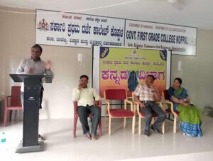 ಸರಕಾರಿ ಪ್ರಥಮ ದರ್ಜೆ ಕಾಲೇಜಿನಲ್ಲಿ ಕನ್ನಡ ವಿಭಾಗ ಆಯೋಜಿಸಿದ್ದ ಕಾರ್ಯಕ್ರಮದಲ್ಲಿ ವಿದ್ಯಾರ್ಥಿಗಳನ್ನು ಉದ್ದೇಶಿಸಿ ಉಪನ್ಯಾಸಗೈದರು. ಮುಂದುವರಿದು ಕವಿರಾಜ ಮಾರ್ಗಕಾರ ಶ್ರೀವಿಜಯನಿಗೆ ಸಂಸ್ಕೃತ ವಿದ್ವಾಂಸರಾದ ದಂಡಿ ಮತ್ತು ಬಾಮಹ ಪ್ರೇರಕರಾಗಿದ್ದರು. ಇವರಿಬ್ಬರ ಪ್ರಭಾವವೇ ಶ್ರೀವಿಜಯನಲ್ಲಿ ಬಂದು ಕವಿರಾಜಮಾರ್ಗ ರಚಿಸುವಲ್ಲಿ ಸಾಧ್ಯವಾಗಿದೆ. ಈ ಮಹತ್ವಪೂರ್ಣ ಕೃತಿಯಲ್ಲಿ ಅಂದಿನ ಸಮಾಜ, ಜನರ ಜೀವನ ಕ್ರಮ, ಸಂಸ್ಕೃತಿಗಳೆಲ್ಲವು ಅಡಕವಾಗಿರುತ್ತದೆ. ಅಲ್ಲದೇ ಅನೇಕ ಚಾರಿತ್ರಿಕ ಸಂಗತಿಗಳು ಗೋಚರವಾಗುತ್ತವೆ. ವಿದ್ಯಾರ್ಥಿಗಳು ಈ ಕೃತಿಯನ್ನು ಆಳವಾಗಿ ಅಧ್ಯಯನ ಮಾಡಬೇಕು ಎಂದರು. ಅಧ್ಯಕ್ಷತೆಯನ್ನು ವಹಿಸಿ ಪ್ರಾಂಶು ಪಾಲರಾದ ತಿಮ್ಮಾರೆಡ್ಡಿ ಮೇಟಿ ಅವರು ಕನ್ನಡ ಸಾಹಿತ್ಯ ಮತ್ತು ಸಂಸ್ಕೃತಿಯನ್ನು ಅರಿತುಕೊಳ್ಳುವ ದಿಸೆಯಲ್ಲಿ ಕವಿರಾಜಮಾರ್ಗ ಕೃತಿಯು ತನ್ನ ಸಾರ್ಥಕತೆಯನ್ನು ಪಡೆದುಕೊಂಡಿದೆ ಎಂದರು. ಪ್ರಾಸ್ತಾವಿಕ ಮಾತುಗಳನ್ನು ಕನ್ನಡ ಪ್ರಾಧ್ಯಾಪಕರು ಮತ್ತು ಸಾಂಸ್ಕೃತಿಕ ವಿಭಾಗದ ಮುಖ್ಯಸ್ಥರಾದ ಡಾ. ಭಾಗ್ಯ ಜ್ಯೋತಿ ಮಾತನಾಡಿದರು. ಕನ್ನಡ ಉಪನ್ಯಾಸಕರಾದ ಡಾ. ತುಕಾರಾಂ ನಾಯ್ಕ, ಡಾ.ಬೋರೇಶ, ಡಾ. ವಿಪ್ಲವಿ, ಡಾ. ಅನ್ನಪೂರ್ಣ ಹಾಗೂ ಭಂಡಾರ ಪ್ರಕಾಶನದ ಪರಶುರಾಮ ಕೋಡಗುಂಟಿ ಇದ್ದರು.