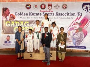 ಗಂಗಾವತಿ: ಜುಲೈ-೦೬ ಮತ್ತು ೭ ರಂದು ಗದಗಿನ ಕನಕ ಭವನದಲ್ಲಿ ನಡೆದ ಗದಗ್ ಓಪನ್ ನ್ಯಾ?ನಲ್ ಲೆವೆಲ್ ಕರಾಟೆ ಚಾಂಪಿಯನ್ಶಿಪ್ನಲ್ಲಿ ಗಂಗಾವತಿ ನಗರದ ಡ್ರೀಮ್ ವರ್ಲ್ಡ್ ಮಾ?ಲ್ ಆರ್ಟ್ಸ್ ಟ್ರಸ್ಟ್ನ ನಾಲ್ಕು ವಿದ್ಯಾರ್ಥಿಗಳು ಪಾಲ್ಗೊಂಡು, ಗಂಗಾವತಿ ನಗರಕ್ಕೆ ಕೀರ್ತಿ ತಂದಿರುತ್ತಾರೆ.