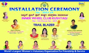 ಇಂದು ಇನ್ನರ್ ವೀಲ್ ಕ್ಲಬ್ ನ ನೂತನ ಪದಾಧಿಕಾರಿಗಳ ಪದಗ್ರಹಣ ಕಾರ್ಯಕ್ರಮ