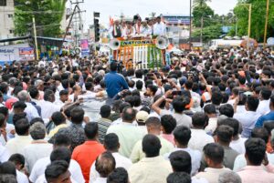 ಯೋಗೀಶ್ವರ್ ಪರ ರೋಡ್ ಶೋ ನಲ್ಲಿ ಭಾಗವಹಿಸಿ ಚನ್ನಪಟ್ಟಣ ಜನತೆಗೆ ಕರೆ ನೀಡಿದರು.